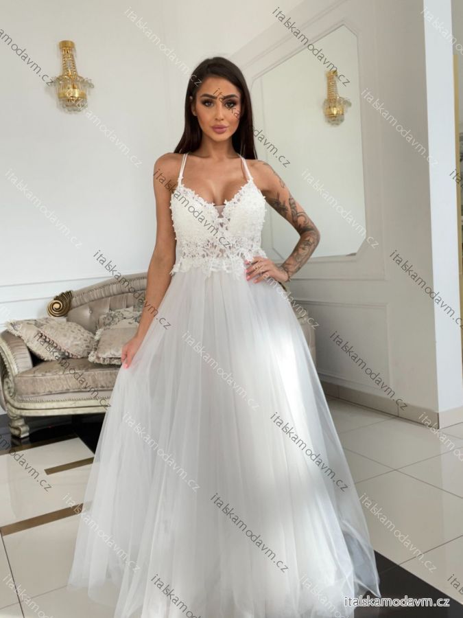 Šaty dlhé svadobné krajkové na ramienka dámske JOLIE (34-38) POLSKÁ MÓDA PMLPT26022