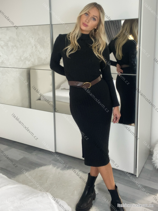 ZBOŽÍ (21713) > Šaty dlhé úpletové s opaskom dlhý rukáv dámska (S/M ONE SIZE) TALIANSKA MÓDA IMM23M8369