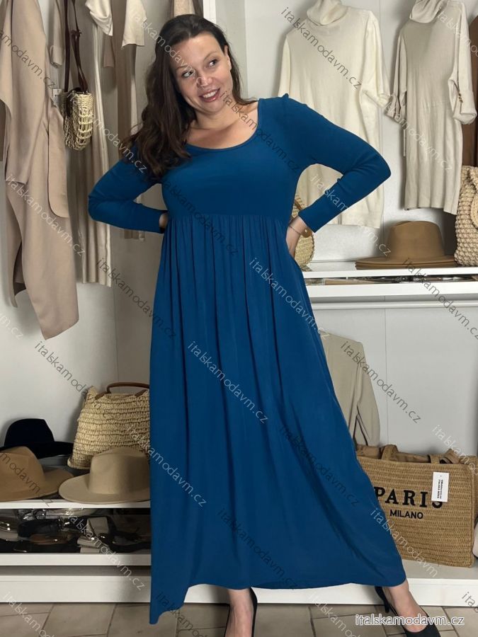 Šaty dlhé voľnočasové teplé dlhý rukáv dámske ALEX (S/M/L ONE SIZE) TALIANSKA MÓDA IM425574/DUR S/M/L modrá petrolejová