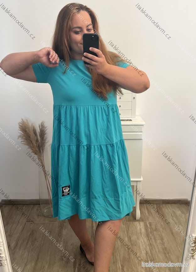 Šaty dlhé voľnočasové letné krátky rukáv dámske nadrozmer ALEXA (48/50/52 ONE SIZE) TALIANSKA MÓDA IMC25220/DR hořčicová 48/50/52