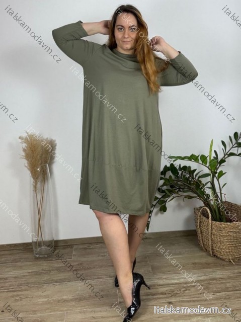 Šaty dlouhé 3/4 dlouhý rukáv dámské nadrozměr (50/52 ONE SIZE) ITALSKÁ MÓDA IMC24KRISTY/DUR khaki 50/52