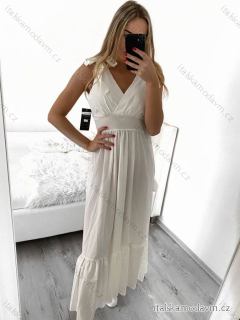 Šaty dlouhé bez rukávu dámské (S/M ONE SIZE) ITALSKÁ MÓDA IMWG221435/DR S/M bílá