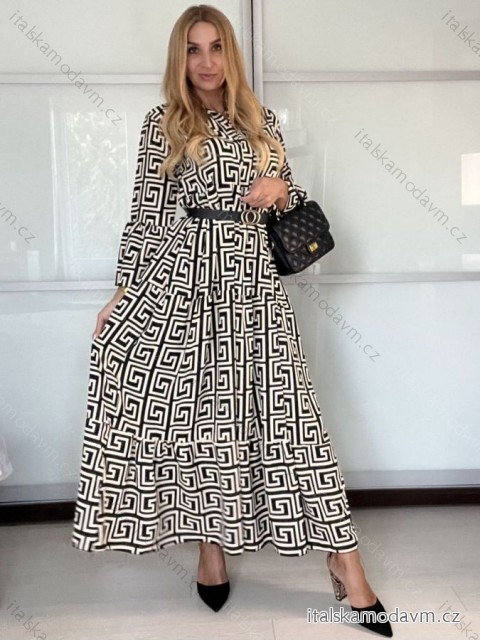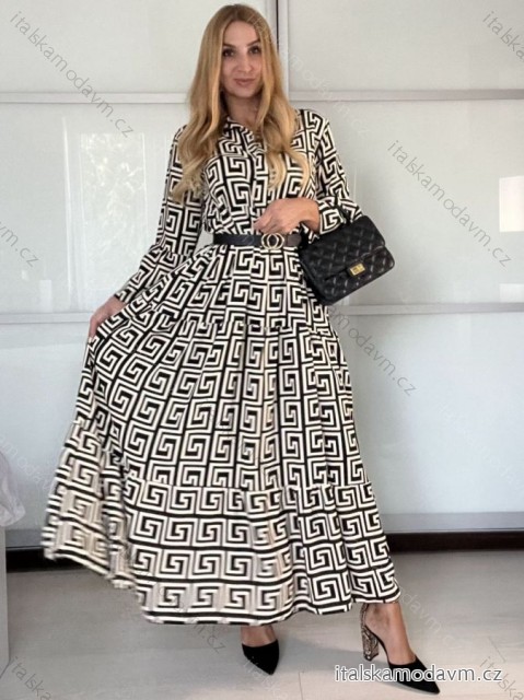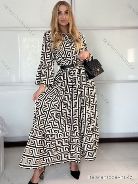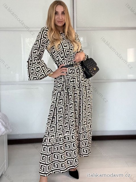 Šaty dlouhé dlhý rukáv dámske (M/L ONE SIZE) TALIANSKA MóDA IM424TERA-1/DU - Čierno-biela - M / L