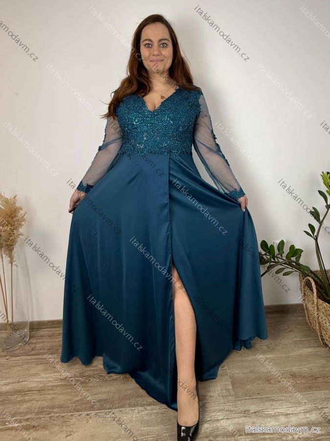 Šaty dlouhé elegantné spoločenské, dlouhý rukáv dámske nadrozměr (4XL-6XL) TALIANSKA MÓDA FMPCH269390/DR 4XL modrá petrolejová