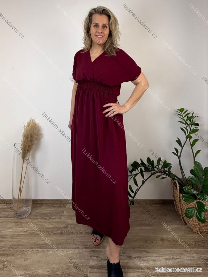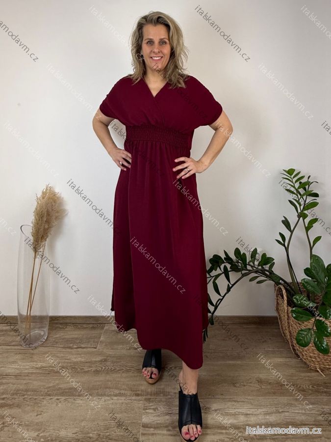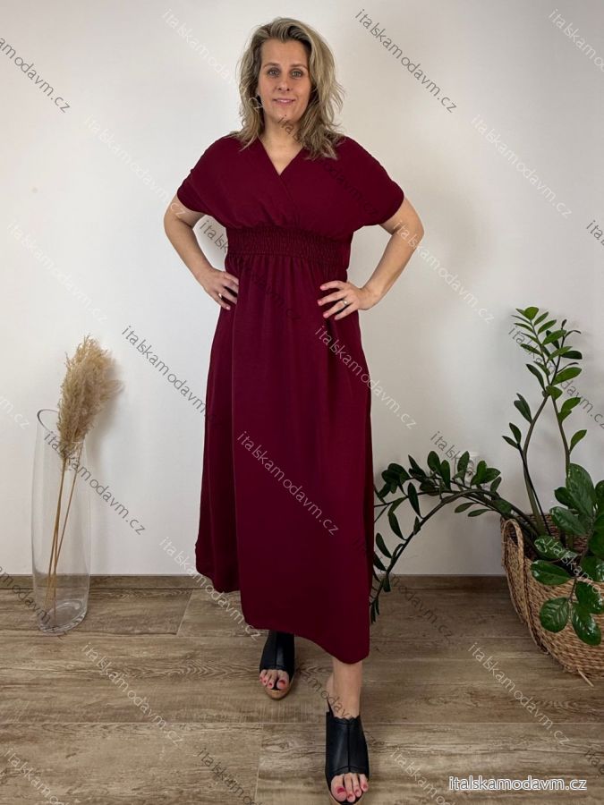 Šaty dlouhé elegantní letní krátký rukáv dámské nadrozměr ASTRA (42/44/46 ONE SIZE) ITALSKÁ MÓDA IM425422/DUR jahodová, 42/44/46