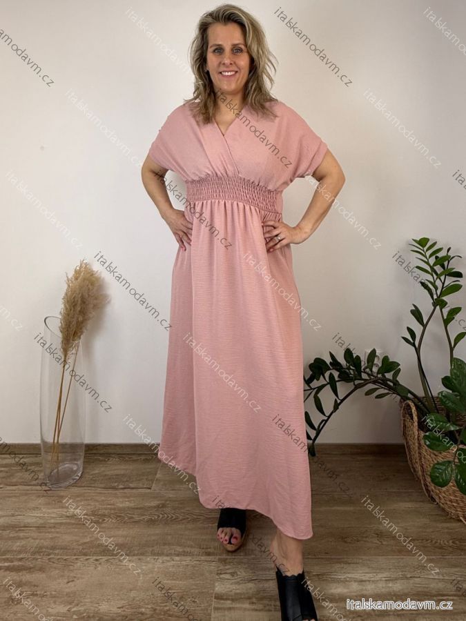 ZBOŽÍ (22222) > Šaty dlouhé elegantní letní krátký rukáv dámské nadrozměr ASTRA (42/44/46 ONE SIZE) ITALSKÁ MÓDA IM425422/DUR jahodová, 42/44/46