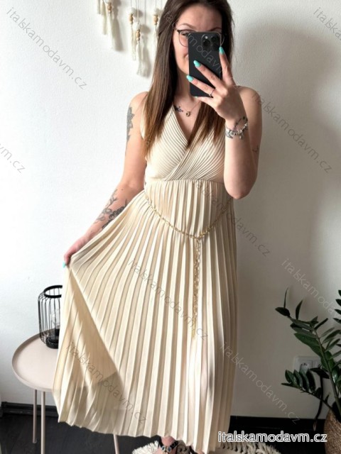 Šaty dlouhé elegantní letní šifonové bez rukávu dámské (S/M ONE SIZE) ITALSKÁ MÓDA IMD22324