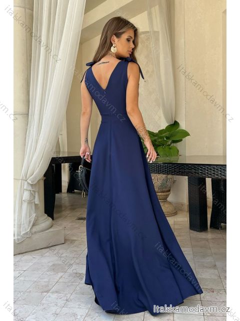 Šaty dlouhé elegantní společenské bez rukávu dámské (34-42) POLSKÁ MÓDA PMLBC232231-01 tmavě modrá 34