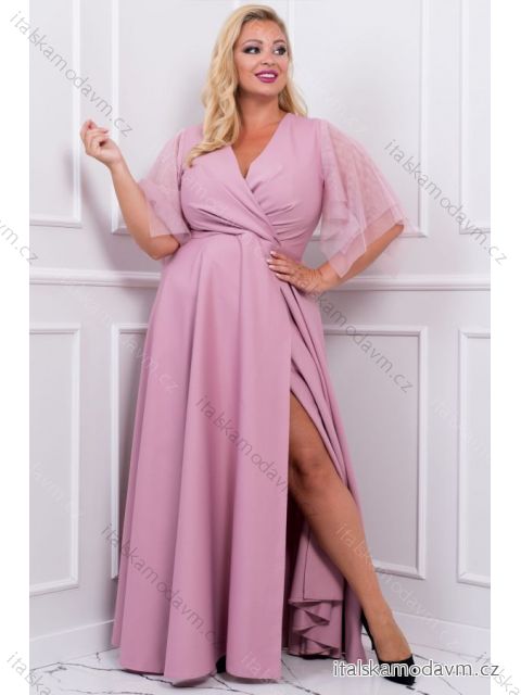 Šaty dlouhé elegantní společenské krátký rukáv dámské nadrozměr (44-54) POLSKÁ MÓDA PMLBF23EVITA4 růžová 44