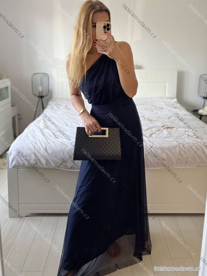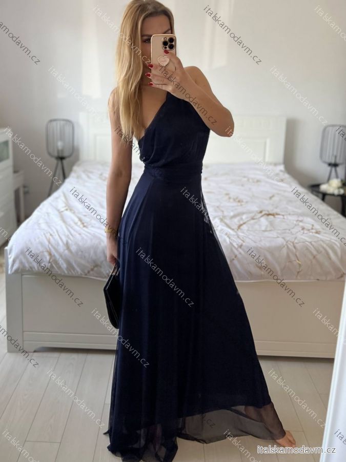 Šaty dlouhé elegantní společenské bez rukávu dámské (S/M ONE SIZE) ITALSKÁ MÓDA IMPSH223623/DUR tm. modrá S/M