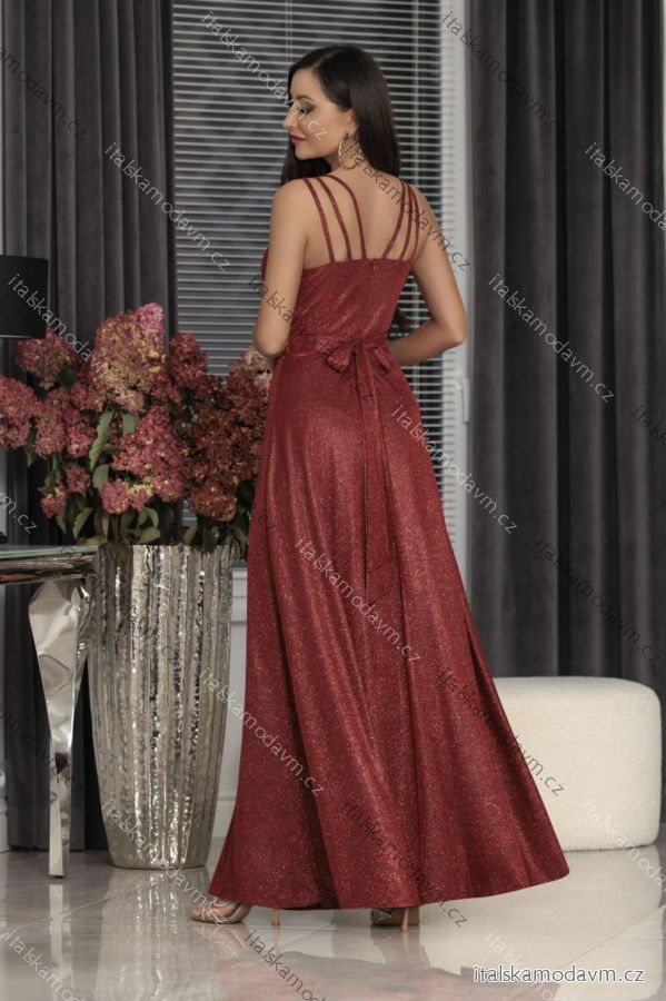 Šaty dlouhé elegantní třpytivé na ramínka dámské (32-42) POLSKÁ MÓDA PMLEL250MARINA3 tmavo červená 38