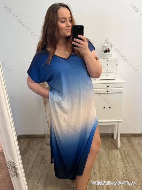 Šaty dlouhé krátký rukáv dámské nadrozměr (3XL/4XL/5XL ONE SIZE) ITALSKá MóDA IM423IRINA