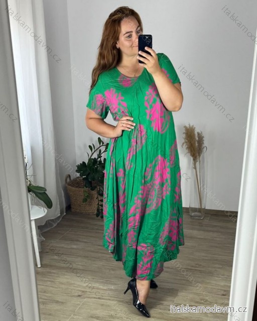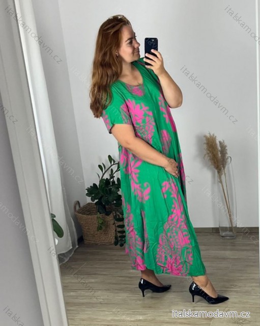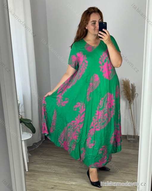 Šaty dlhé letné krátky rukáv dámske nadrozmer (54/56/58 ONE SIZE) TALIANSKA MÓDA IMWEC24122/DUR zelená 56/58