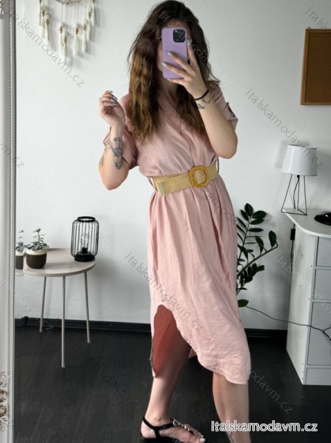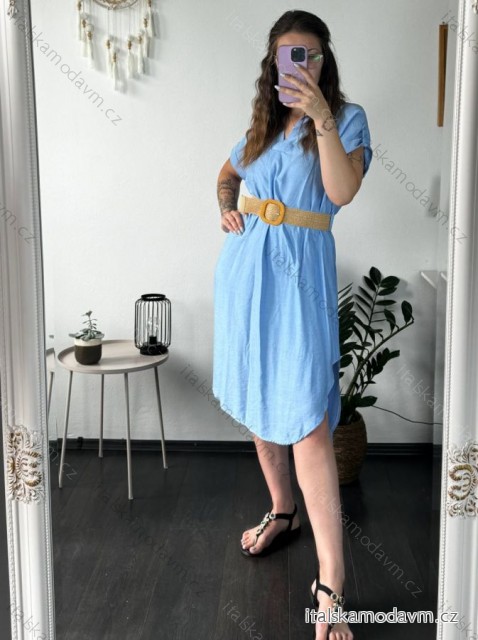 Šaty dlouhé letní s páskem krátký rukáv dámské (S/M/L ONE SIZE) ITALSKÁ MÓDA IMC24264/DR modrá džínová M/L