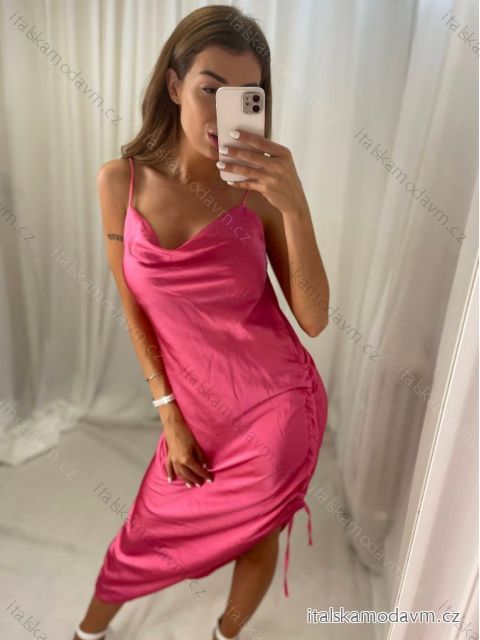 Šaty dlouhé letní saténové na ramínka dámské (S/M ONE SIZE) ITALSKÁ MÓDA IMWB222457 bílá