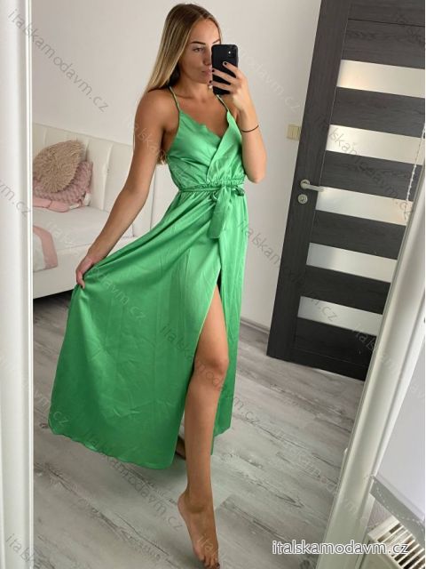 Šaty dlouhé letní saténové na ramínka dámské (S/M ONE SIZE) ITALSKÁ MÓDA IMWB22081/DR S/M zelená