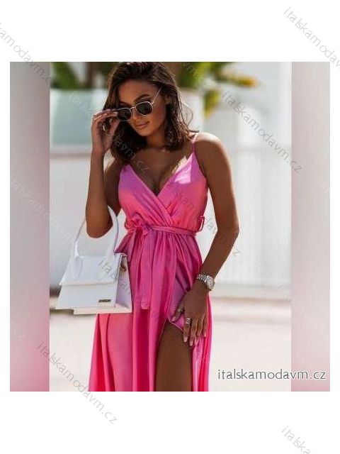 Šaty dlouhé letní saténové s páskem na ramínka dámské (S/M/L/XL ONE SIZE) ITALSKÁ MÓDA IMM22INFINITE