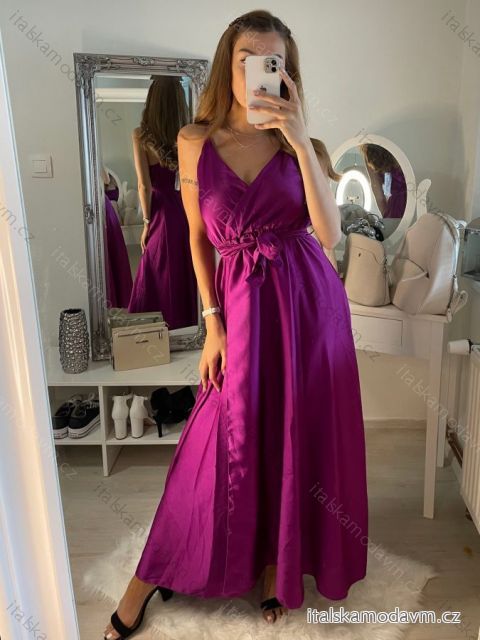 ZBOŽÍ (21818) > Šaty dlouhé letní saténové s páskem na ramínka dámské (S/M/L/XL ONE SIZE) ITALSKÁ MÓDA IMM22INFINITE