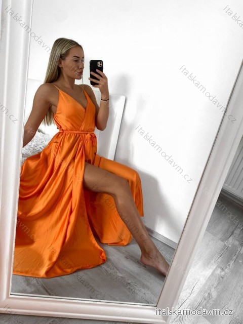 ZBOŽÍ (21941) > Oblečení dámské (17898) > Šaty (9434) > Šaty dlouhé letní saténové s páskem na ramínka dámské (S/M ONE SIZE) ITALSKÁ MÓDA IMM22INFINITE oranžová S/M