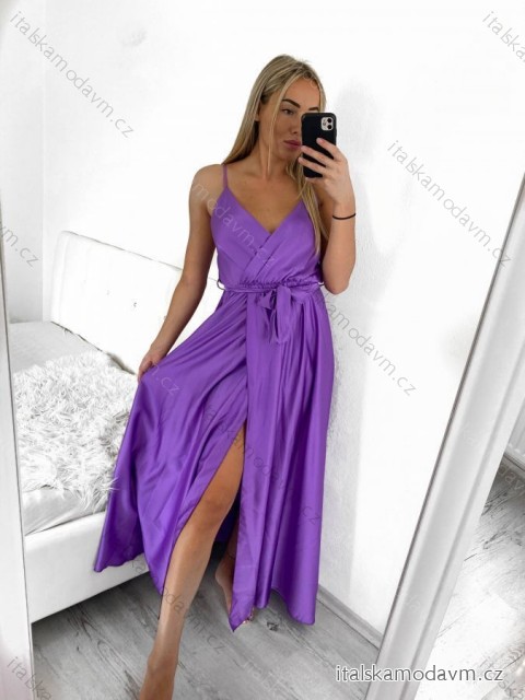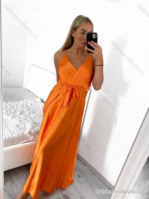 Šaty dlouhé letní saténové s páskem na ramínka dámské (S/M ONE SIZE) ITALSKÁ MÓDA IMM22INFINITE oranžová S/M