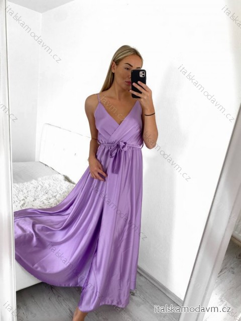 Šaty dlouhé letní saténové s páskem na ramínka dámské (S/M ONE SIZE) ITALSKÁ MÓDA IMM22INFINITE fialová