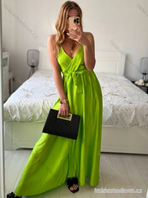 ZBOŽÍ (21941) > Oblečení dámské (17898) > Šaty (9434) > Šaty dlouhé letní saténové s páskem na ramínka dámské (S/M ONE SIZE) ITALSKÁ MÓDA IMM22INFINITE/DUR - zelená limetková - S/M