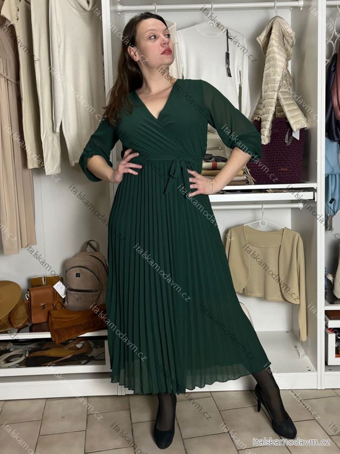 ZBOŽÍ (21975) > Šaty dlouhé skládané s páskem dlouhý rukáv dámské ZITA (S/M/L ONE SIZE) ITALSKÁ MÓDA IMWAX2510680/DUR S/M/L tmavě smaragdová