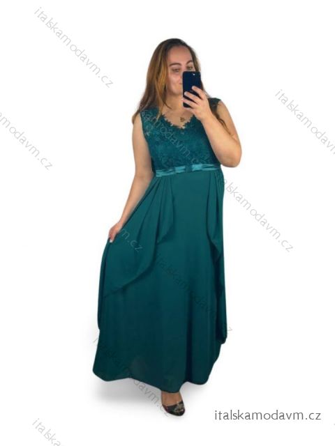 Šaty dlouhé společenské dámské nadrozměr (XL/2XL ONE SIZE) ITALSKÁ MÓDA IMM23LEILA/DR XL/2XL smaragdová