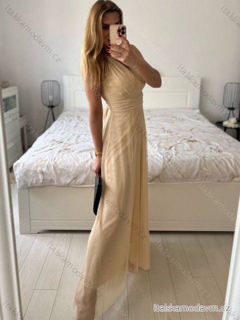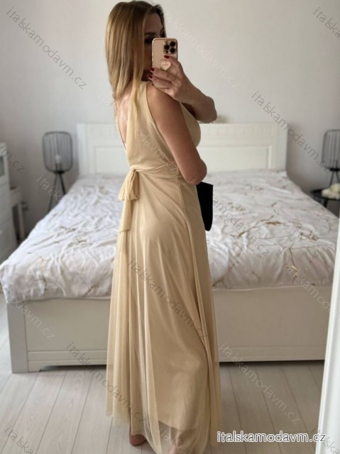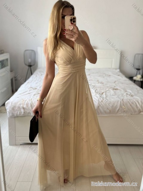 Šaty dlouhé společenské elegantní bez rukávu dámské (S/M ONE SIZE) ITALSKÁ MÓDA IMPSH233584/DU - béžová, S/M