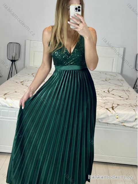 Šaty dlouhé společenské flitrové sametové bez rukávu dámské (S/M ONE SIZE) ITALSKÁ MÓDA IMWB233931/DU S/M Černá