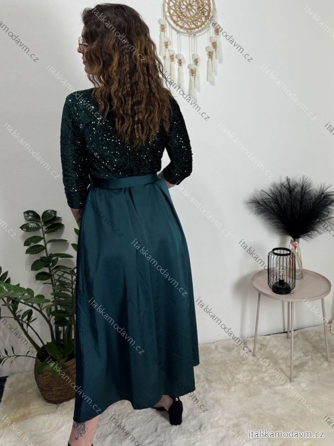 Šaty dlouhé společenské flitrové s páskem dlouhý rukáv dámské (XS/S/M ONE SIZE) ITALSKÁ MÓDA IMM25M13302/DUR béžová XS/S/M