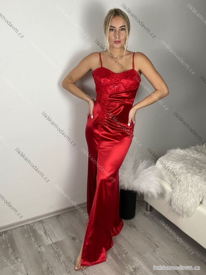 Šaty dlouhé společenské krajkové na ramínka dámské JANE (S/M/L ONE SIZE) ITALSKÁ MÓDA IMC25521/DR S/M červená