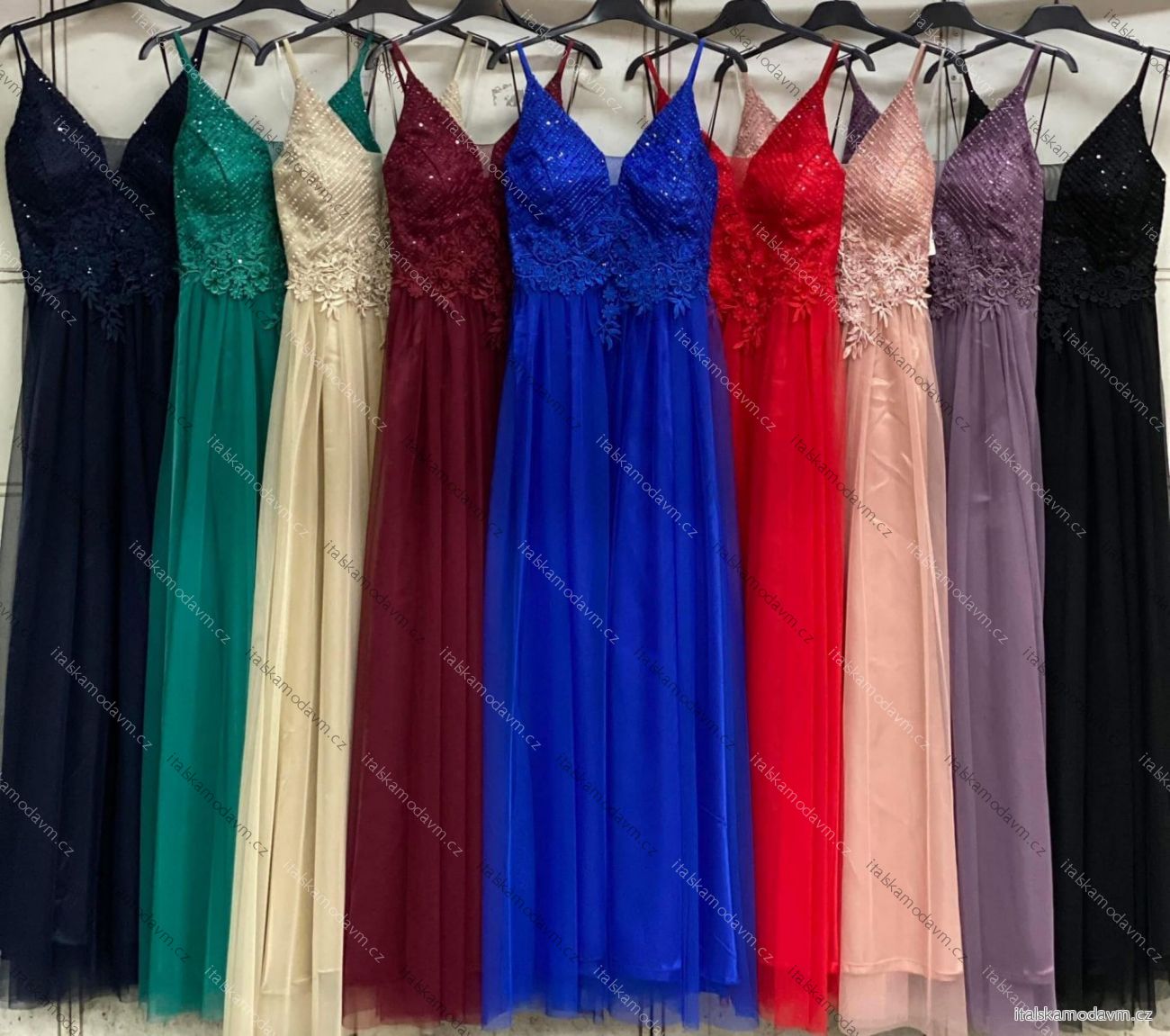 Šaty dlouhé společenské na ramínka dámské LEXI (S/M ONE SIZE) ITALSKÁ MÓDA IMC25570