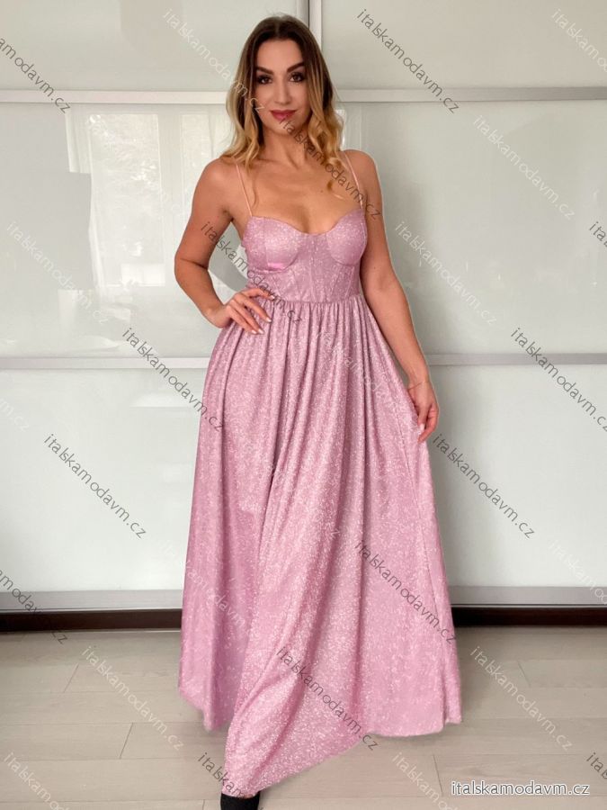 ZBOŽÍ (21907) > Šaty dlouhé společenské na ramínka dámské LEONA (S/M ONE SIZE) ITALSKÁ MÓDA IMPMD2643458/DU S/M růžová