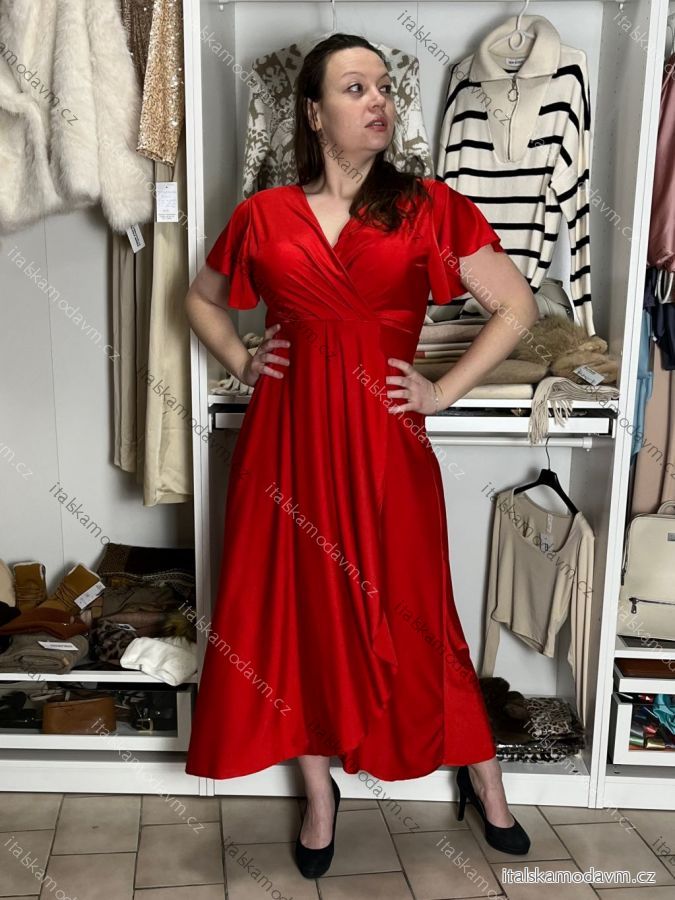 ZBOŽÍ (21818) > Šaty dlouhé společenské saténové krátký rukáv dámské ADINA (38/40/42 ONE SIZE) ITALSKÁ MÓDA IM425896/DUR 38/40/42 červená