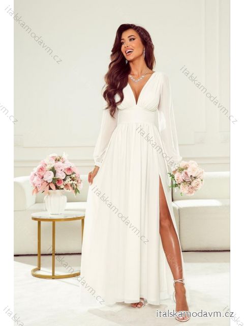 Šaty dlouhé společenské svatební dlouhý rukáv dámské nadrozměr (34-46) POLSKÁ MÓDA PMLWD23SOFIA bílá 40