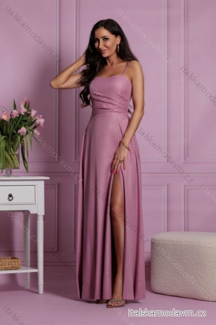 Šaty dlouhé společenské třpytivé na ramínka dámské (34-42) POLSKÁ MÓDA PMLEL24NATHALIEB7 růžová 38