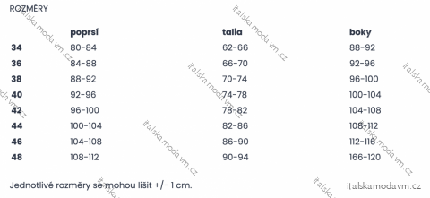 velikost 34- přes prsa 80-84cm, pas 62-66cm, boky 88-92cm, délka 150cm.