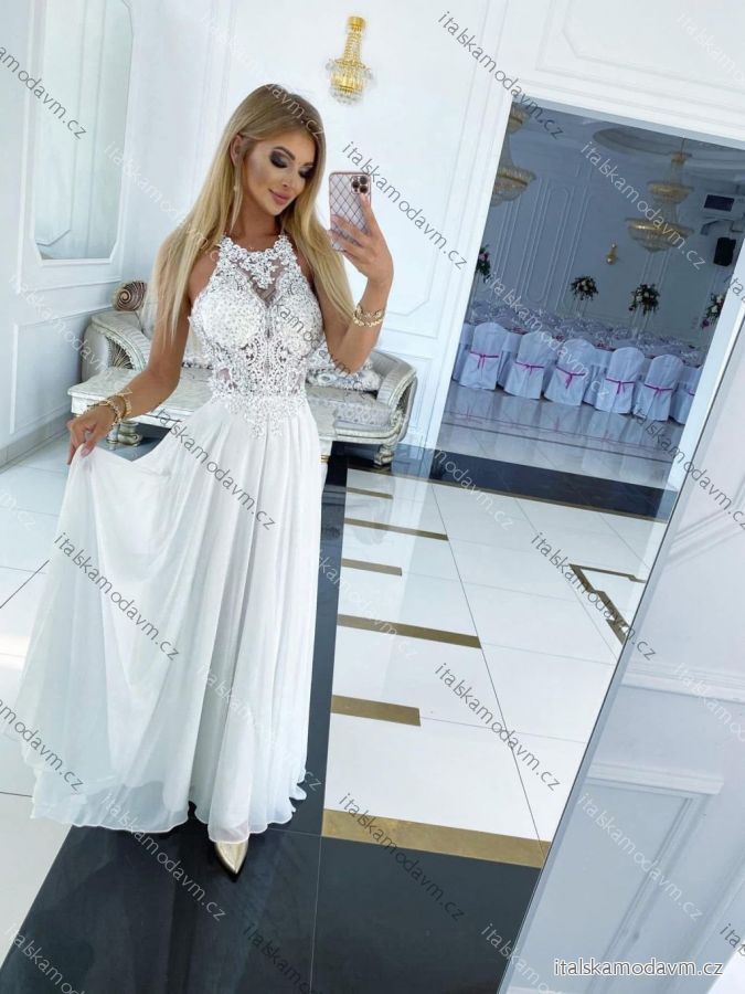 Šaty dlouhé svatební krajkové bez rukávu dámské MERCEDES (34-40) POLSKÁ MÓDA PMLPT26014