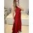 Šaty dlouhé třpytivé společenské na ramínka dámské (S/M/L ONE SIZE) ITALSKÁ MÓDA IMC23501/DUR M/L červená