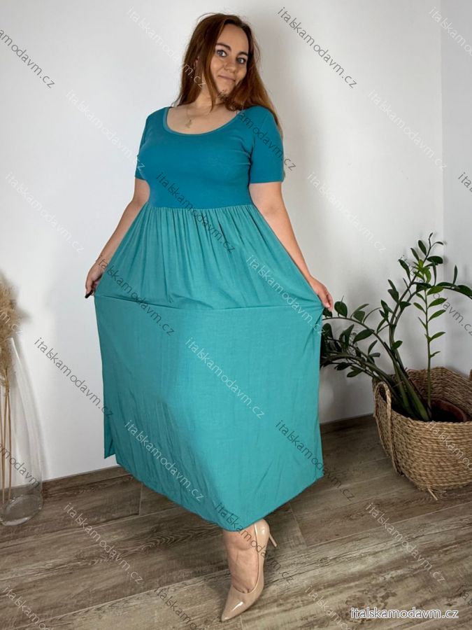 Šaty dlouhé volnočasové letní dámské nadrozměr (444/46/48 ONE SIZE) ITALSKÁ MÓDA IM425MARIA-V/DUR sv. mintová 46/48