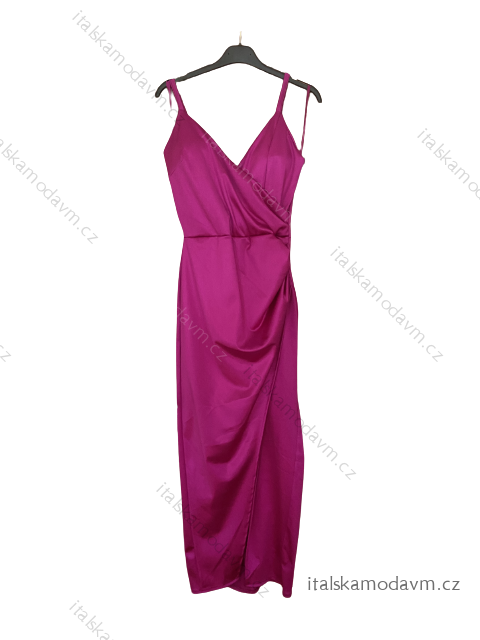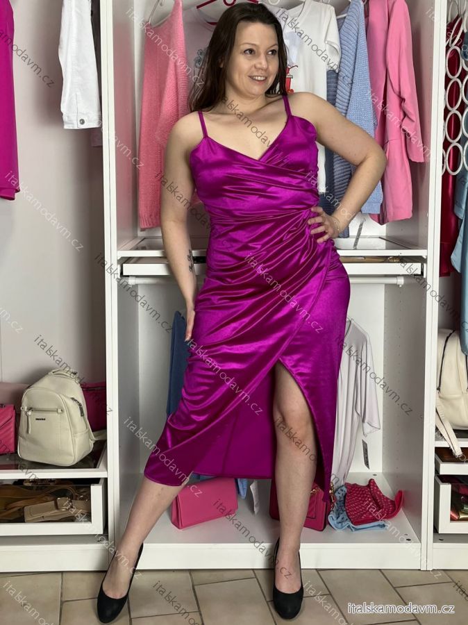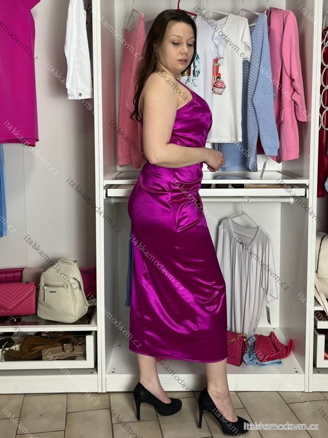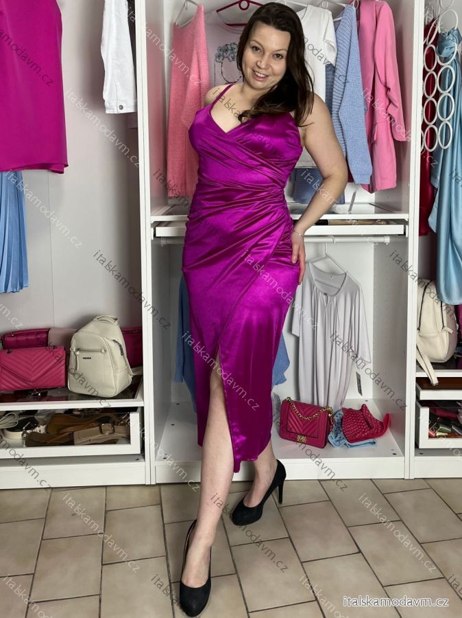 Šaty elegantné saténové spoločenské na ramienka dámske (L/XL ONE SIZE) TALIANSKA MÓDA IMS23KLARA/DU fuchsiová L/XL