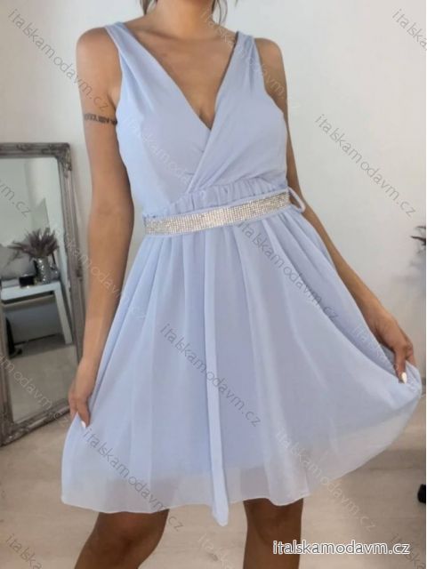 Šaty elegantné šifónové na ramienka dámske so spodničkou, s opaskom s kamienkami