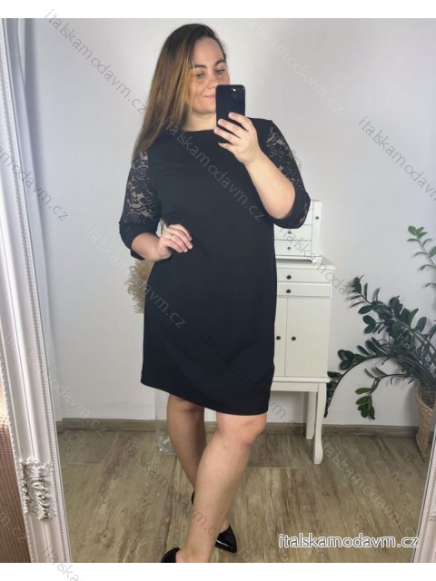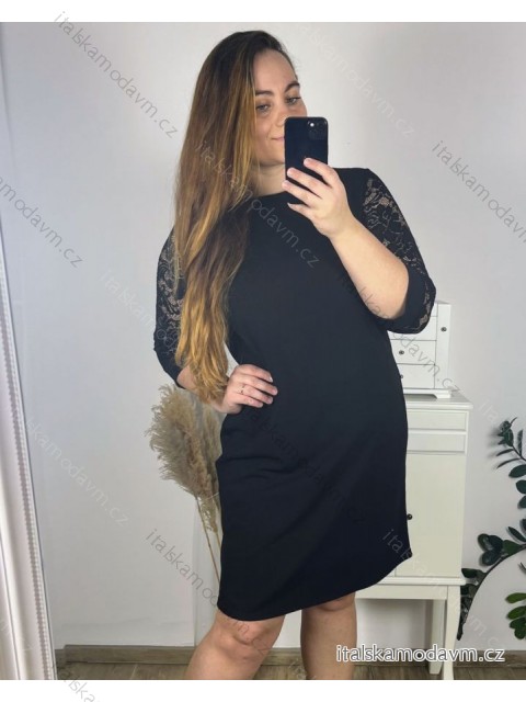Šaty elegantné spoločenské 3/4 rukáv dámske nadrozmer (44-56) POLSKÁ MÓDA PMFF24DITA - Farba čierna - veľkosť 48