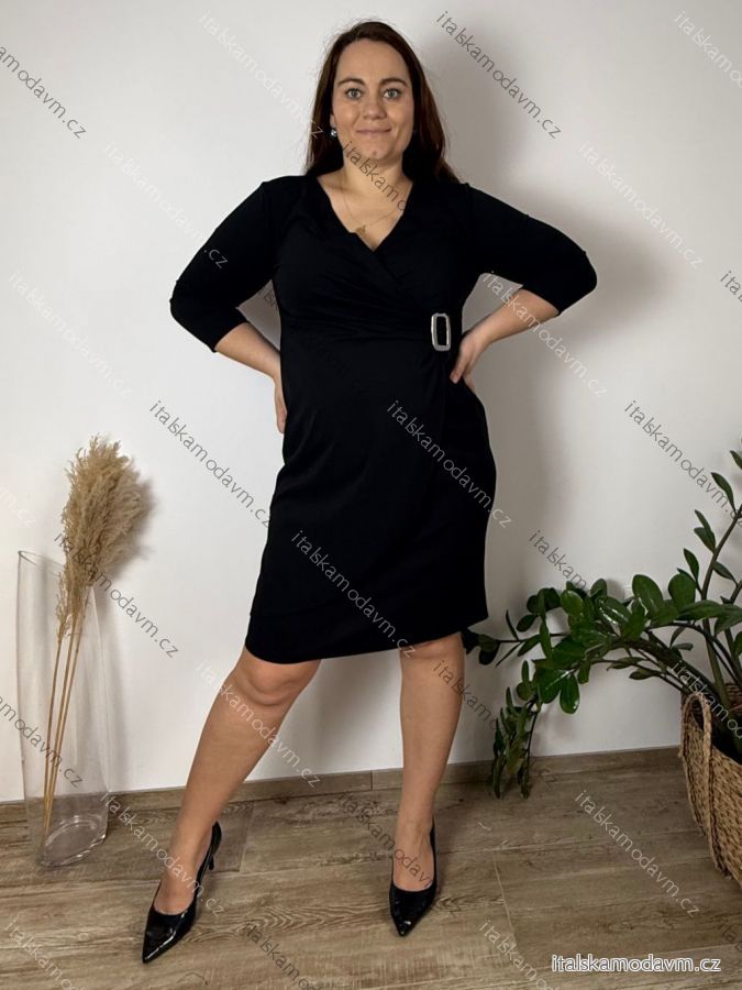 Šaty elegantné spoločenské 3/4 rukáv dámske nadrozmer (44-50) POLSKÁ MÓDA PMF25001-2/DU 46 čierna