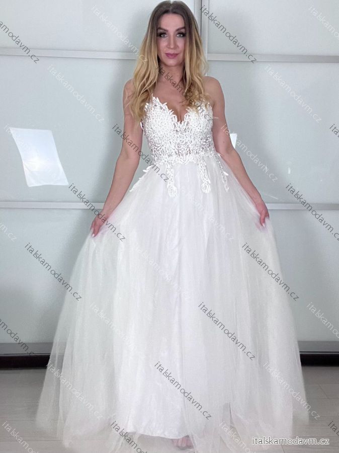 ZBOŽÍ (22203) > Šaty elegantné spoločenské/svadobné na ramienka dámske (S/M.ONE SIZE) TALIANSKA MÓDA IMM2218831-1/DUR S / M biela