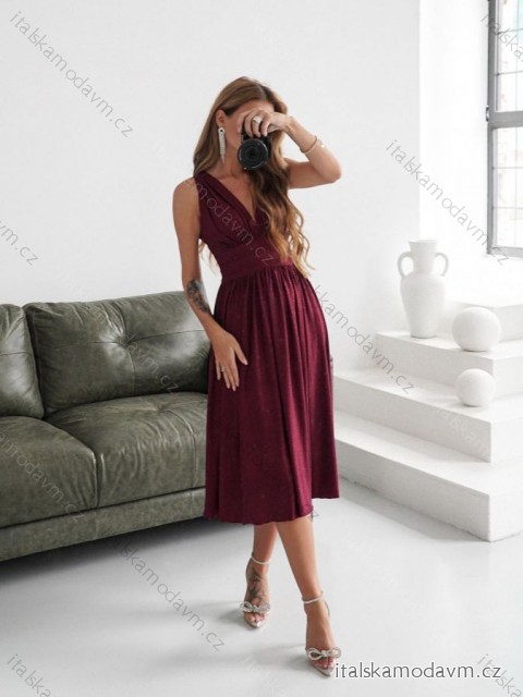 ZBOŽÍ (21711) > oblečenie dámske (17520) > šaty (9141) > ŠATY BEZ RUKÁVOV (1599) > Šaty elegantné trblietavé bez rukávu dámske nadrozmer (34-44) POLSKÁ MÓDA PMLWD24ROMA-7 tmavo červená 42