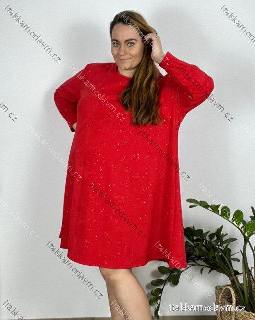Šaty elegantné třpytivé dlouhý rukáv dámske nadrozměr (54/56/58ONE SIZE) TALIANSKA MóDA IM424LEILA/DR 56/58 červená
