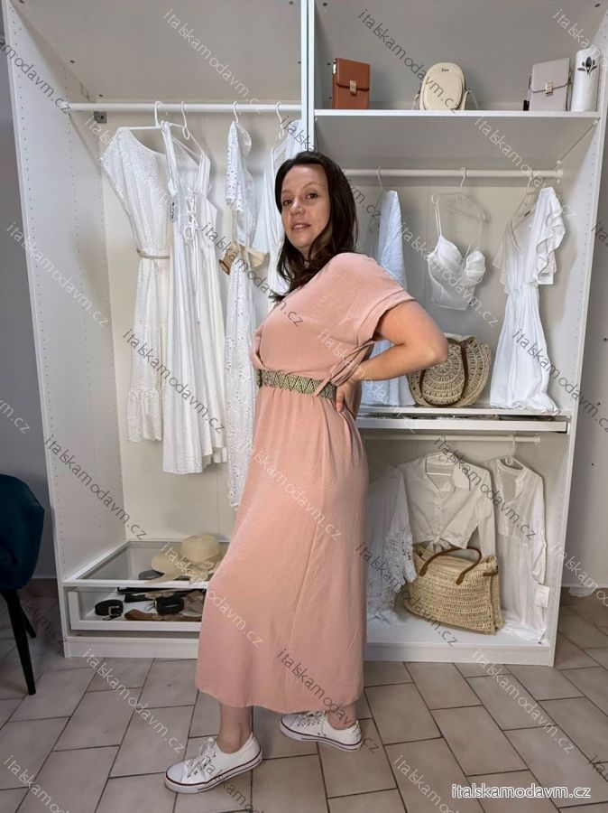 ZBOŽÍ (22068) > Šaty elegantní košilové s páskem krátký rukáv dámské Luka (42/44/46 ONE SIZE) ITALSKÁ MÓDA IMD25084/DUR - tmavě růžová - 42/44/46