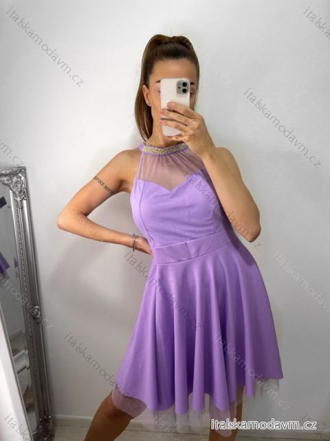 Šaty elegantní krátké bez rukávu společenské dámské (S/M ONE SIZE) ITALSKÁ MÓDA IMM22Q52233/ULfialová